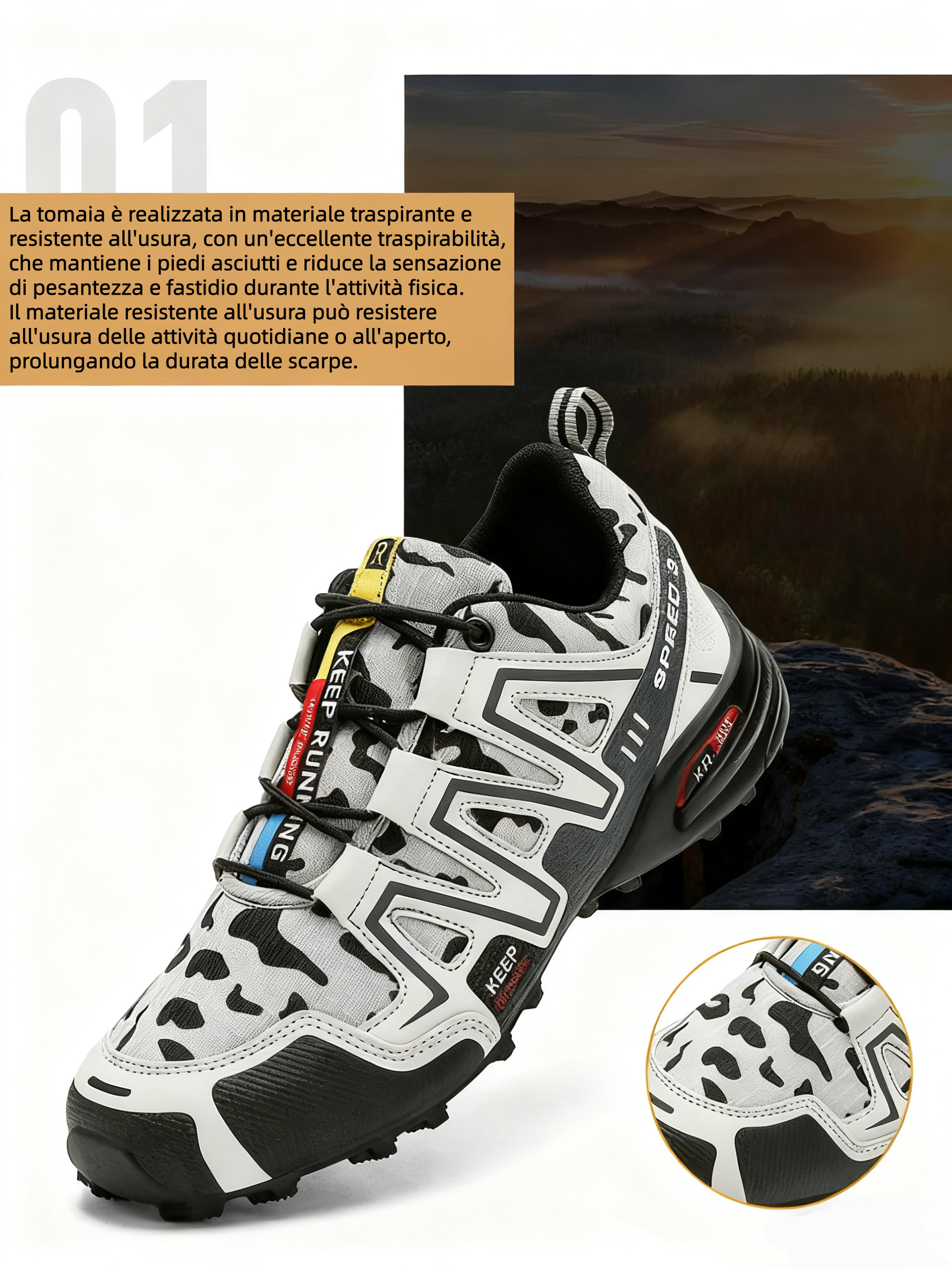 Le scarpe Renmiix® sono progettate per l'uso quotidiano, il lavoro e le attività all'aperto come l'escursionismo, offrendo il massimo comfort e supporto. Il loro design ergonomico massimizza il comfort e ottimizza la salute del piede. Sentiti sicuro a ogni passo.