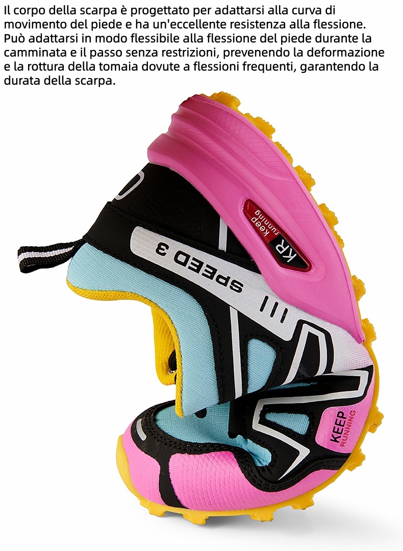 Funzionalità e flessibilità si fondono. Le scarpe Renmiix® sono realizzate con materiali che si adattano perfettamente ai movimenti naturali del piede. La suola antiscivolo offre supporto e flessibilità, rendendole adatte a una varietà di superfici e attività.